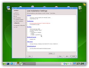 OpenSUSE 11.0 jest pierwszym wydaniem które wspiera instalację systemu Live - System uruchamiamy bezpośrednio z płyty a następnie wybierając ikonę Install możemy rozpocząć instalację systemu na dysku twardym (rozwiązanie znane z dystrybucji Ubuntu i Kubuntu). Dodatkowo sam instalator został całkowicie przebudowany i znacząco poprawił się jego wygląd.