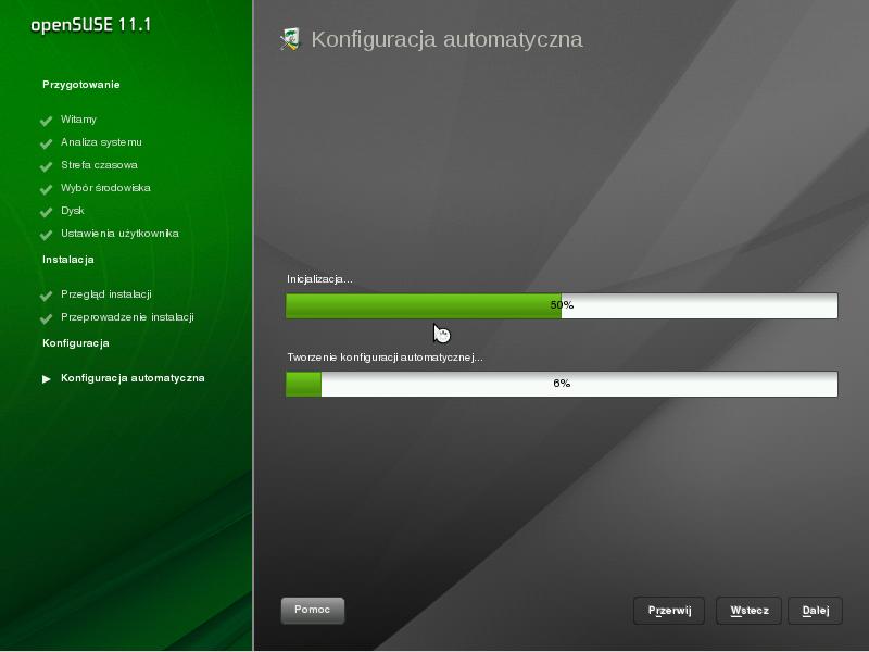Po skopiowaniu naszych plików system dokona automatycznej konfiguracji naszego sprzętu (połączenia sieciowe, karty graficznej, karty dźwiękowej, etc.)