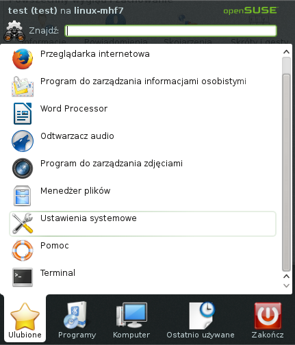 Logo openSUSE (Start) >> Ustawienia systemowe