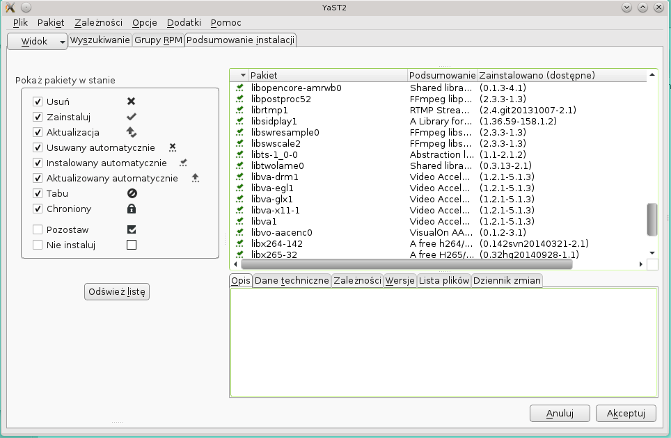 Ponieważ zmieniliśmy dostawcę pakietów musimy zaakceptować listę pakietów do instalacji jeszcze raz wybierając "Akceptuj"