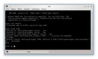 teraz musimy zapisać menu wyboru systemu korzystając z programu GRUB: