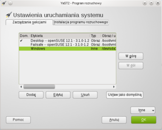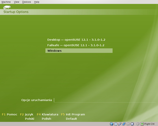 Zainstalowanie innego systemu operacyjnego np.Windows na komputerze gdzie jest już zainstalowany openSUSE w większości przypadków usunie menu wyboru systemu do uruchomienia. Poniżej opiszę w jaki sposób przywrócić menu wyboru systemu i jak dodać do niego system rodziny Windows, na potrzeby artykułu test wykonany został z Windows XP i Windows 7 oraz openSUSE 12.1