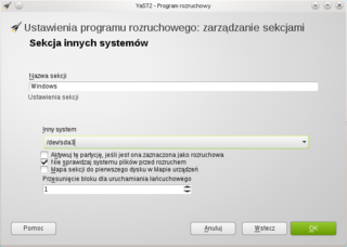 - Wybieramy partycję z Windowsem z listy wyboru: Inny system.