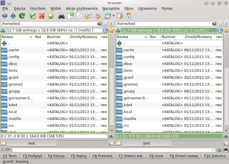 Krusader jest dwu-panelowym menadżerem plików wzorowanym na kultowym Norton Commander'ze czy Windows Commander'ze, który dysponuje dość sporą funkcjonalnością.