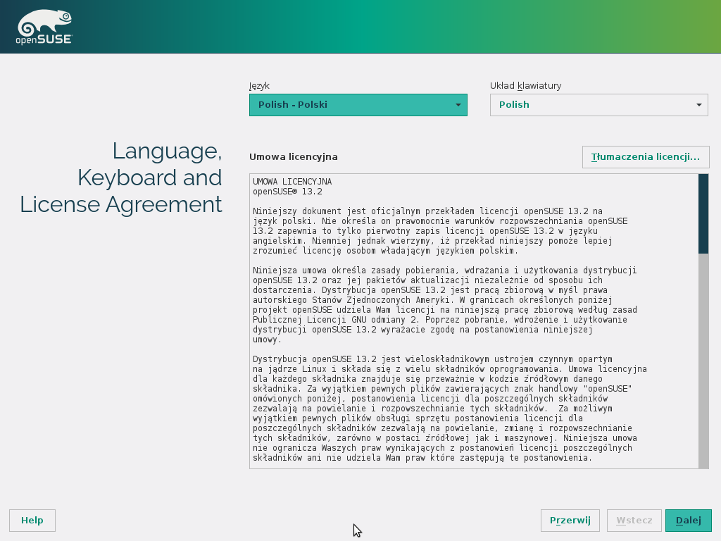 Poniżej znajduje się opis instalacji openSUSE 13.2. Zamieszczone zostały także zrzuty ekranu poszczególnych etapów. Proces instalacji jest prosty i intuicyjny, zachęcam do testowania openSUSE 13.2