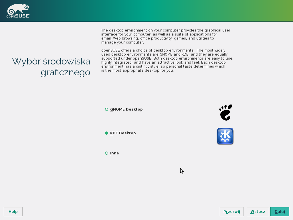Teraz możemy wybrać środowisko graficzne.