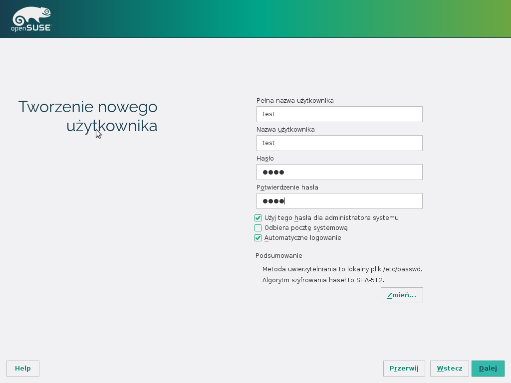 Zapraszam do zapoznania się z działem Skonfiguruj openSUSE