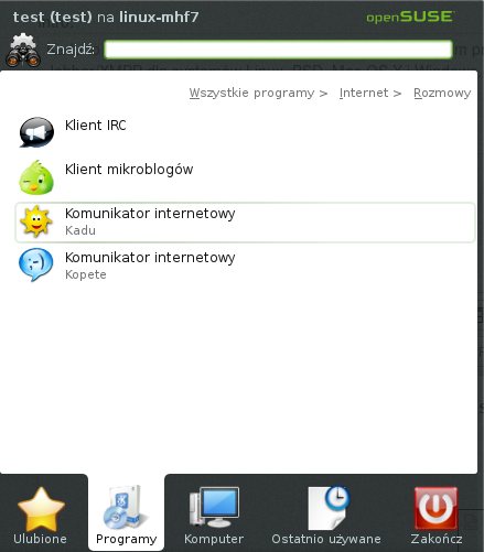 Logo openSUSE (Start) >> Wszystkie programy >> Internet >> Rozmowy >> Komunikator internetowy