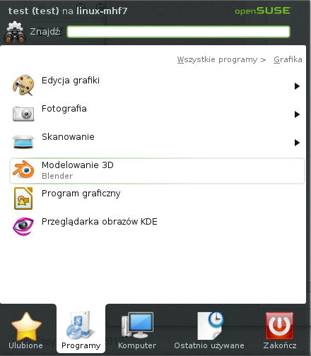 Logo openSUSE (Start) >> Wszystkie programy >> Grafika >> Modelowanie 3D