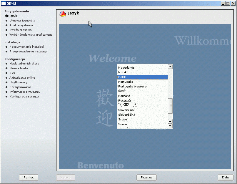 Okazało się, że to wybór obsługi dodatkowego języka powodował uwalenie instalacji.