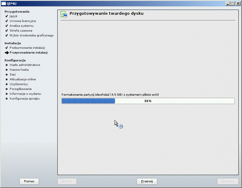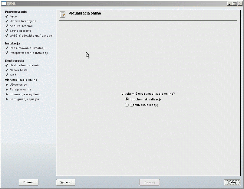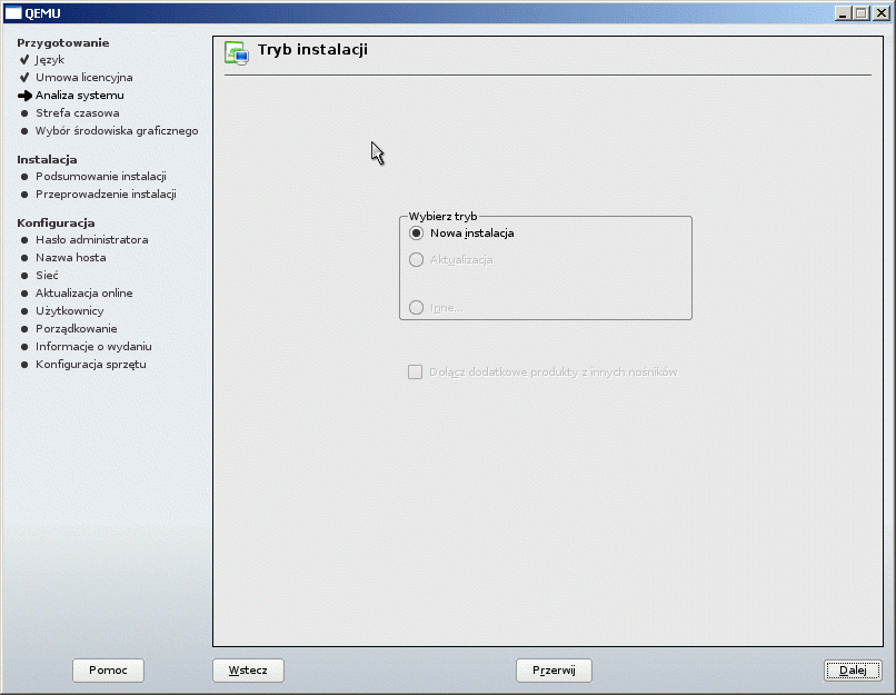 Po skopiowaniu pakietów komputer zostanie zrestartowany i czekamy bez żadnych działań na samodzielne uruchomienie. Tylko, że komputer nie podejmuje żadnych działań i za Chiny nie chce bootować z twardego dysku! System odpala się jedynie poprzez wykorzystanie opcji z DVD Instaluj/Inne/Uruchom System. Nie pomaga reinstalacja, naprawianie systemu, dziwne siakieś!