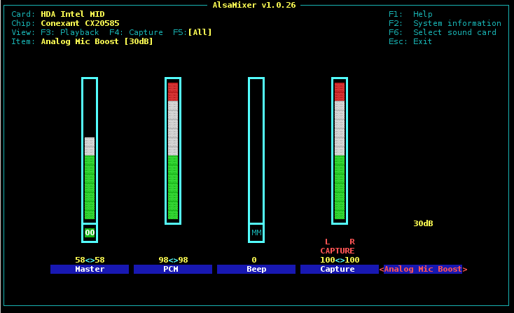 Poniżej opiszę sposób z wykorzystanie narzędzia konsolowego alsamixer